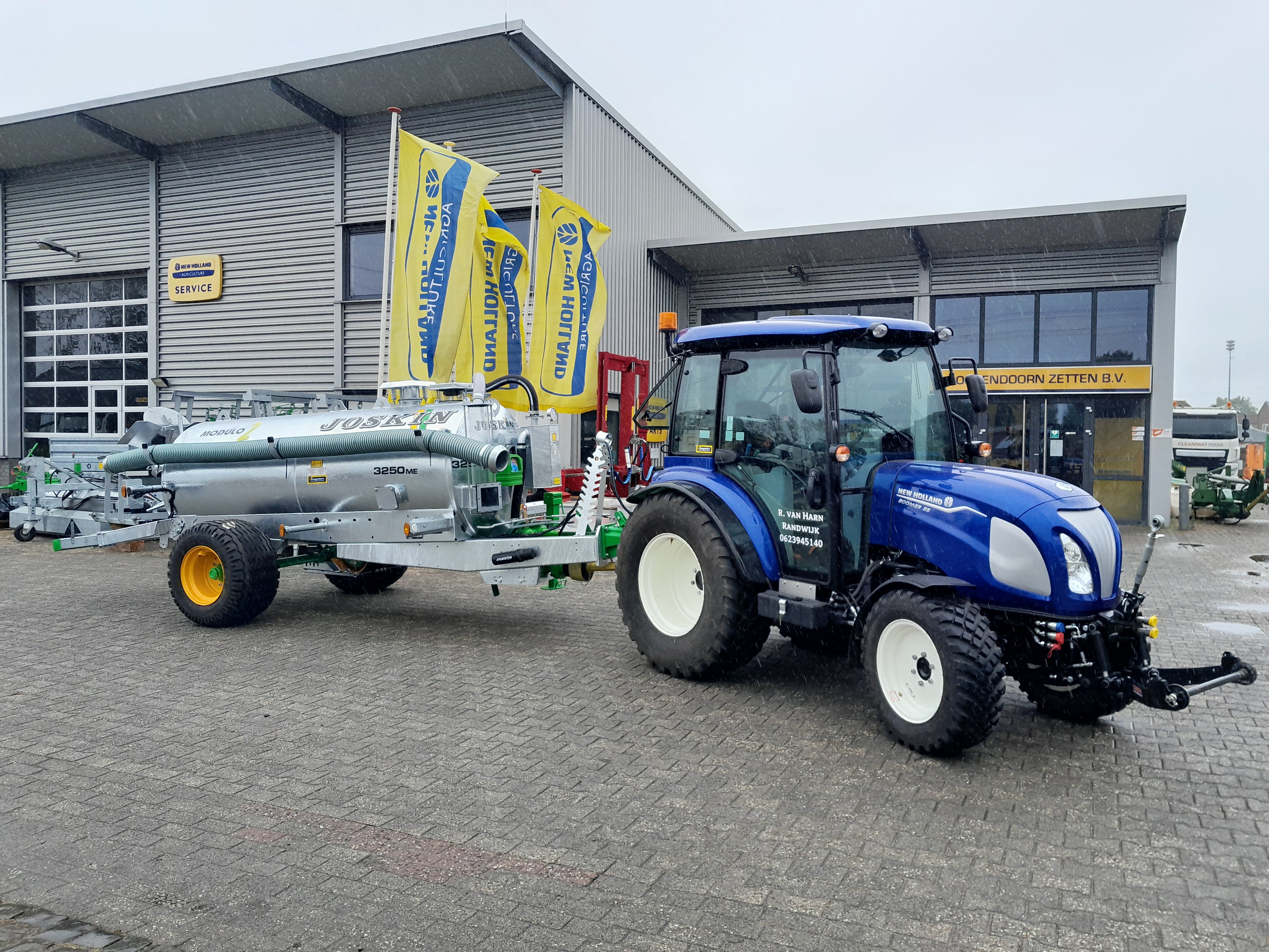 Remco van Harn uit Randwijk pakt dit op in de werkzaamheden met een volledig naar wens gebouwde nieuwe Joskin 3250 Modulo tank. Dankzij snel schakelen bij Joskin stond de tank snel paraat en nu kan het beginnen. Door de goed doordachte uitvoering kan Remco snel en efficiënt jonge bomen, heesters, en plantgoed van voldoende water voorzien. Met de Boomer 55 er voor is de combinatie zeer compact en zijn ook moeilijk bereikbare plekken goed te bewateren. Er gaat weinig boven regen op zijn tijd, maar als dat niet komt bel dan Remco maar.